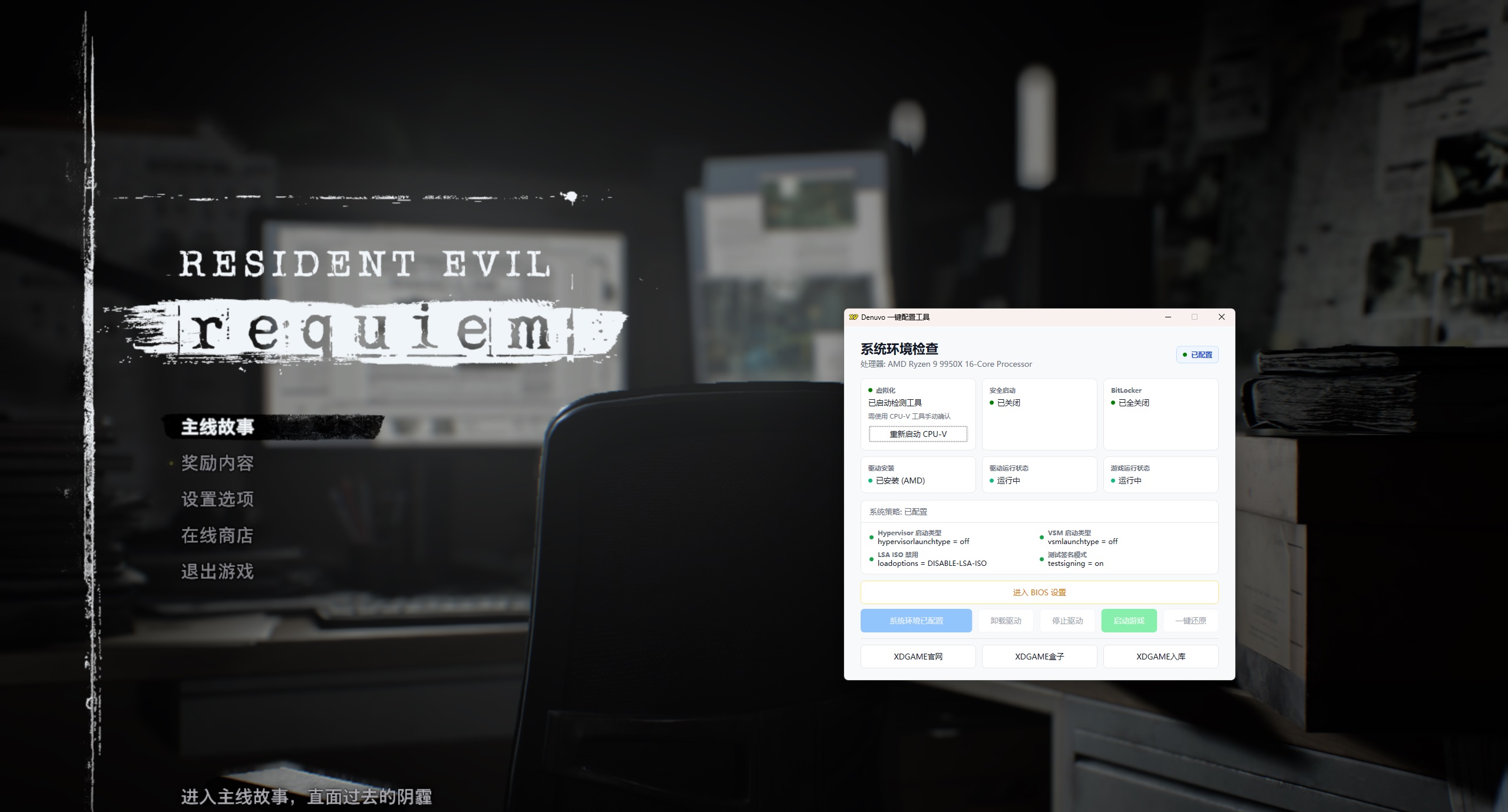 重启电脑后继续打开Denuvo.exe点击 安装驱动 → 启动驱动 → 启动游戏 → 开始玩耍