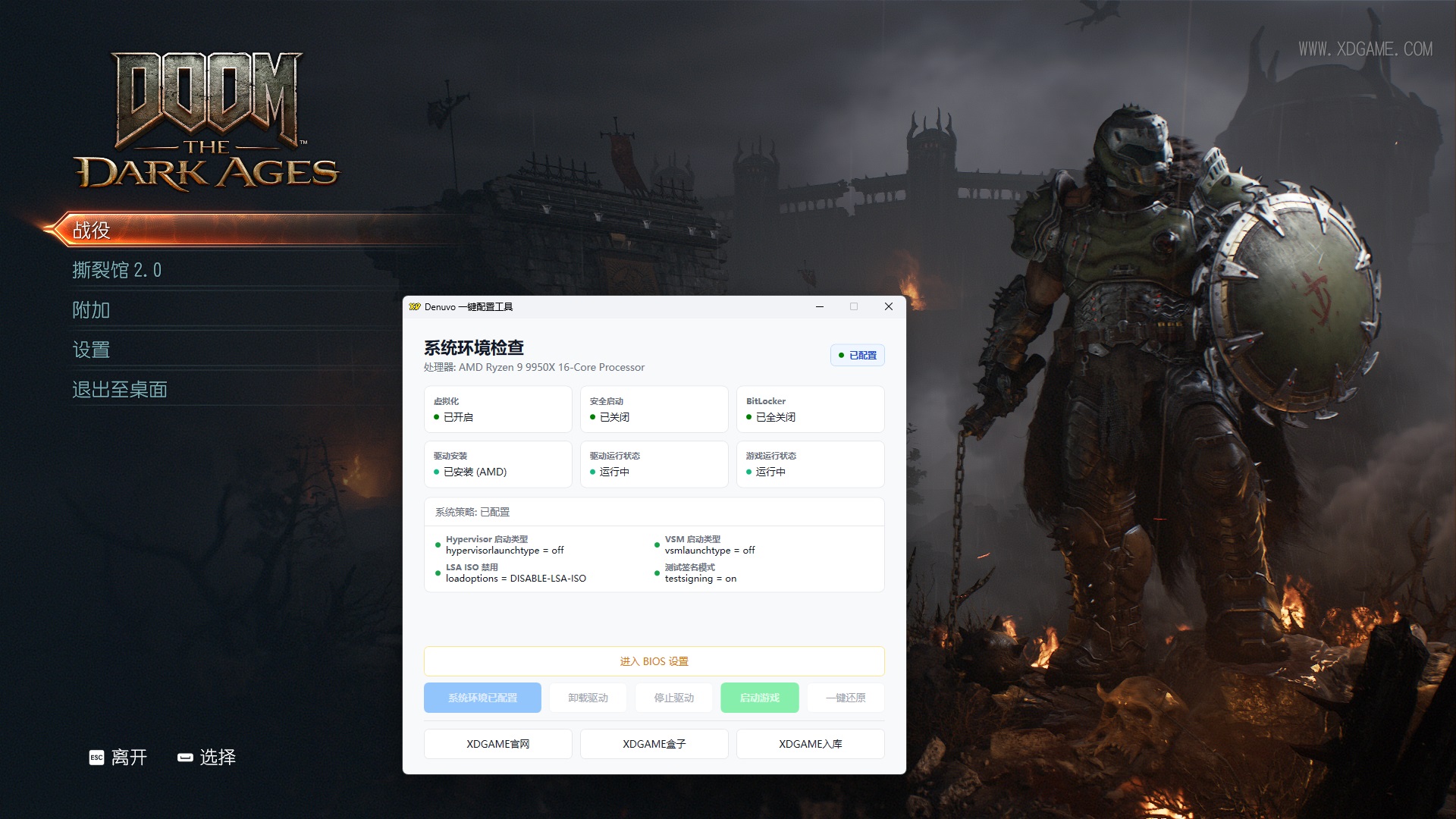 重启电脑后继续打开Denuvo.exe点击 安装驱动 → 启动驱动 → 启动游戏 → 开始玩耍